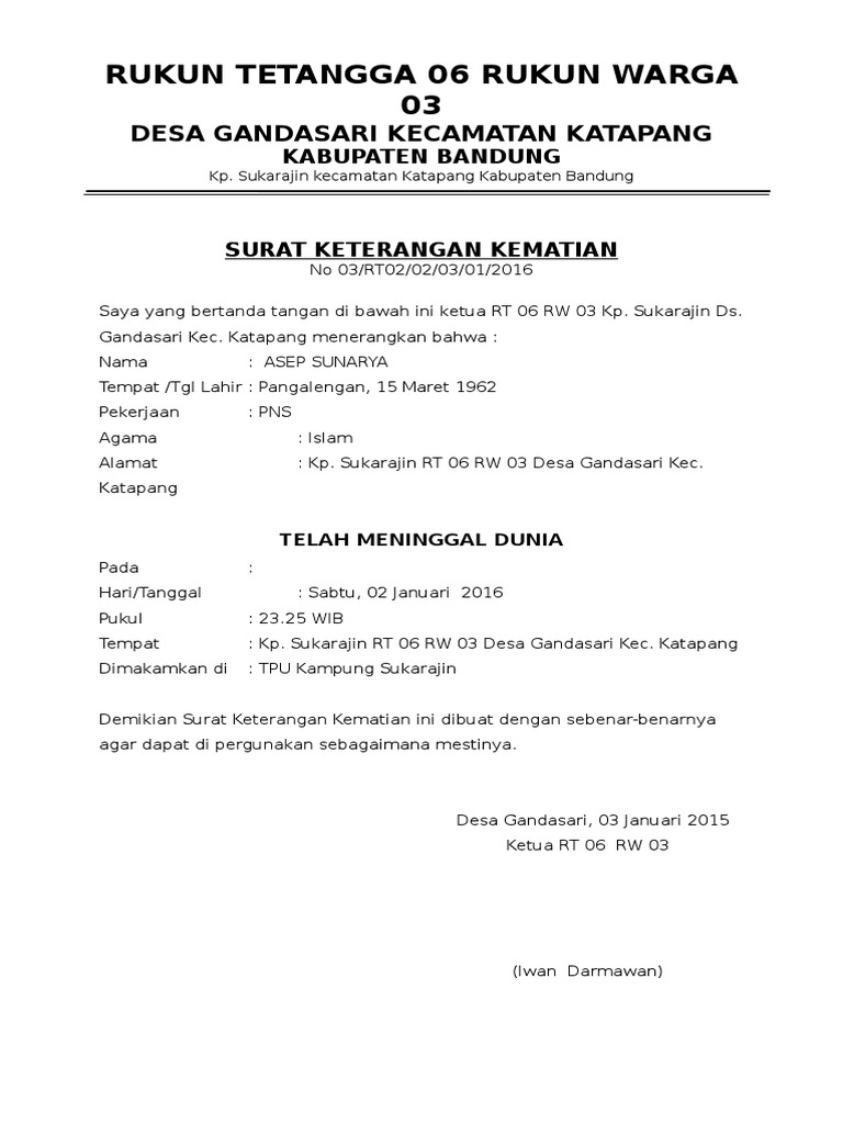Contoh surat keterangan kematian rt rw. Check spelling or type a new query. We did not find results for: Maybe you would like to learn more about one of these?